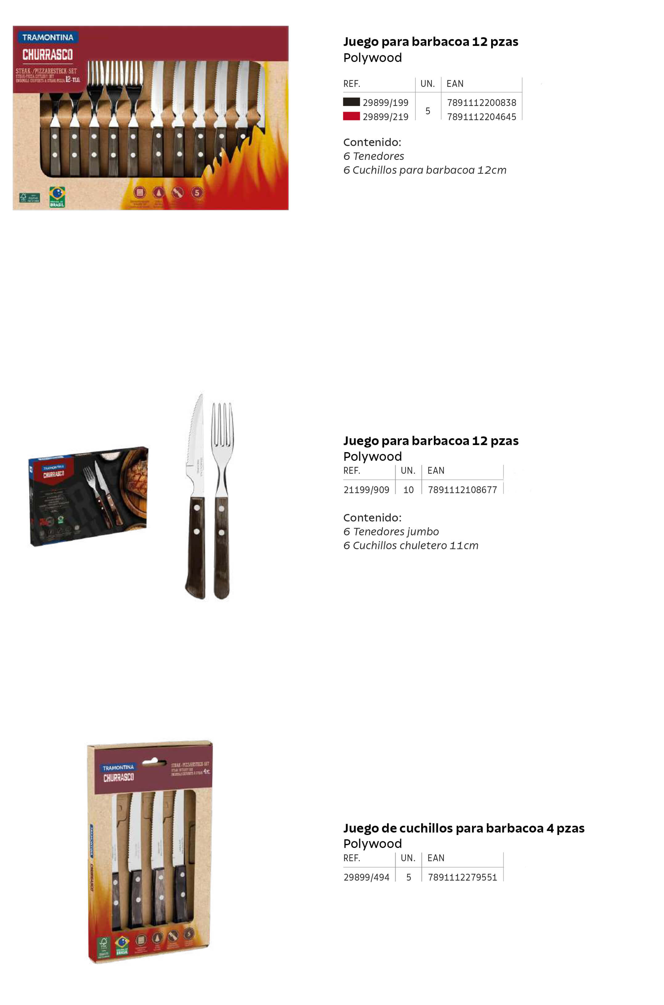 Sets von Messern und Gabeln für den Grill oder für Ihren Alltag in der Küche. Dank dieser Messer und Gabeln können Sie eine große Grillparty mit Familie oder Freunden genießen. Stücke aus rostfreiem Stahl und braun oder rot Polywood.