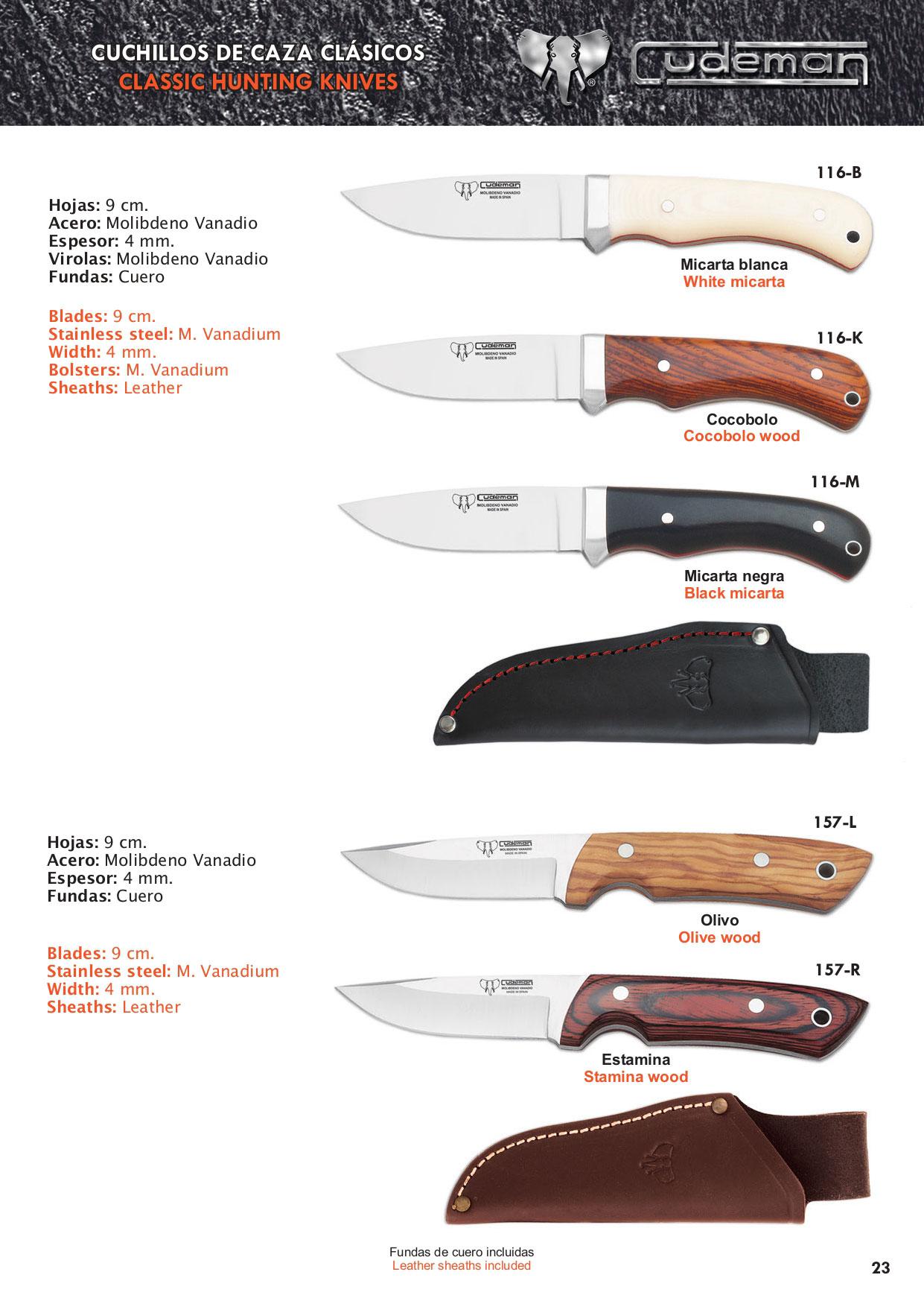 Jagdmesser mit Molybdän-Vanadium-Stahlklinge mit einer Dicke von 4 mm. Molybdän-Vanadium-Stahlzwingen. Ledertasche. </ p>