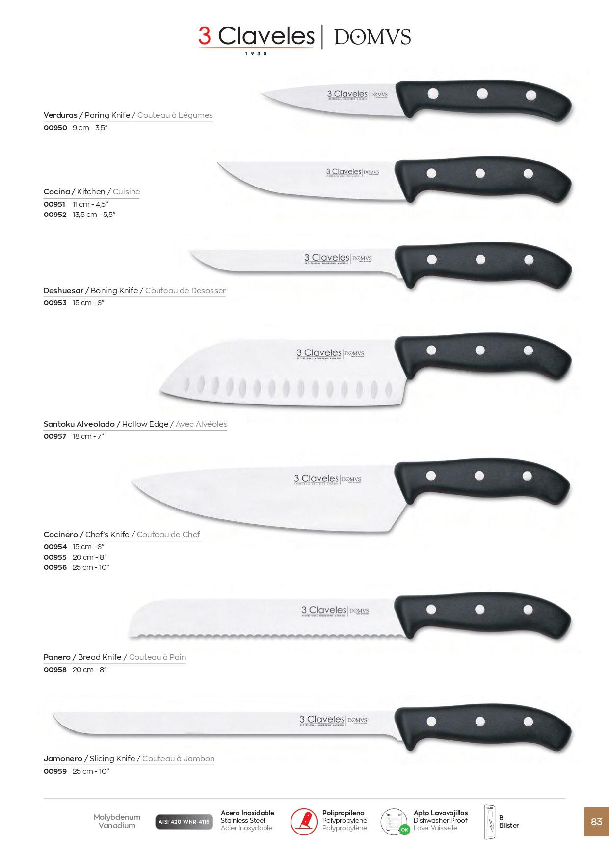 Küchenmesser mit Klinge aus Edelstahl AISI 420 WNR 4116. Leichter und widerstandsfähiger Polypropylengriff, stabil bei hohen und niedrigen Temperaturen. Küchenmesser, Ausbeinmesser, Santoku, Kochmesser, Brotmesser.