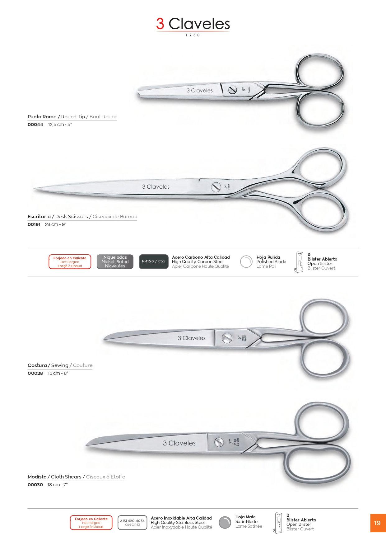 3 Claveles Nähscheren aus Kohlenstoffstahl 12,5 cm