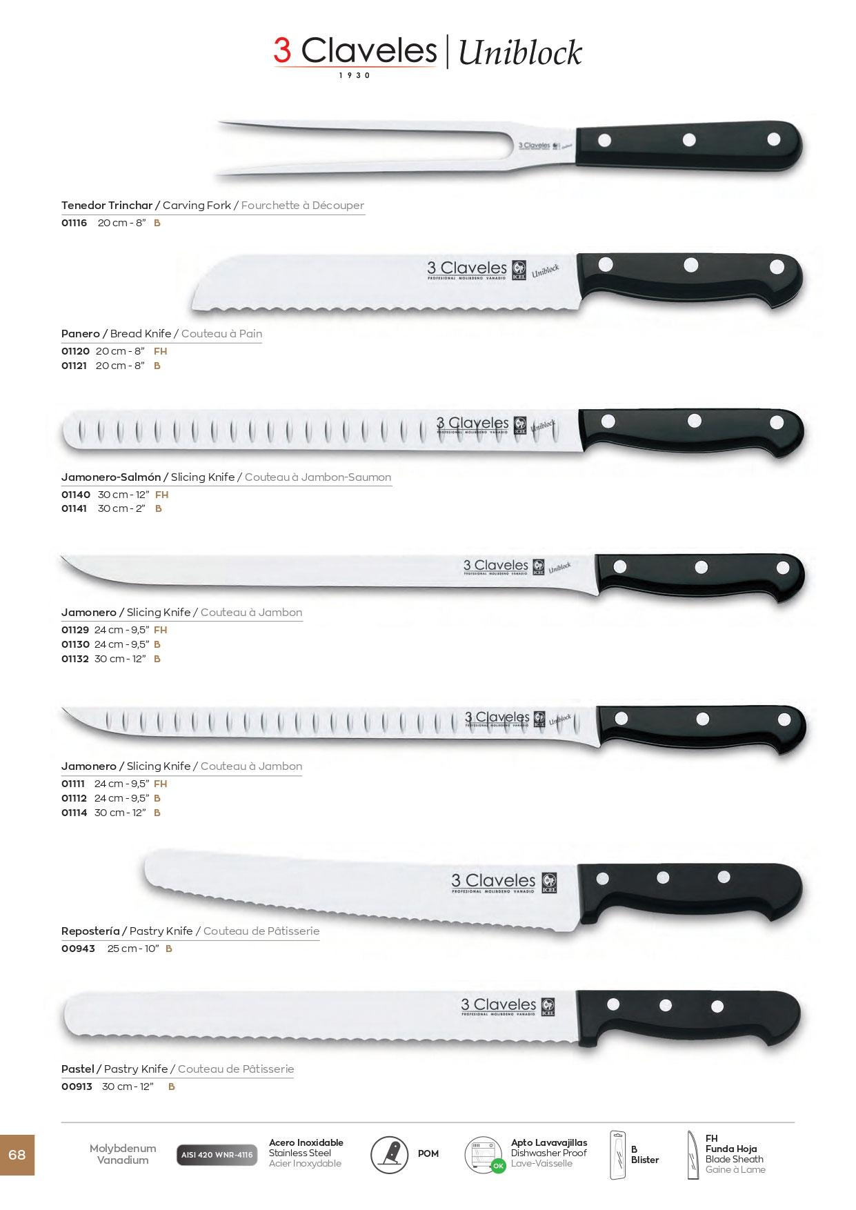 3 Claveles Uniblock Schinkenmesser mit Polyoxymethylengriff und 2...