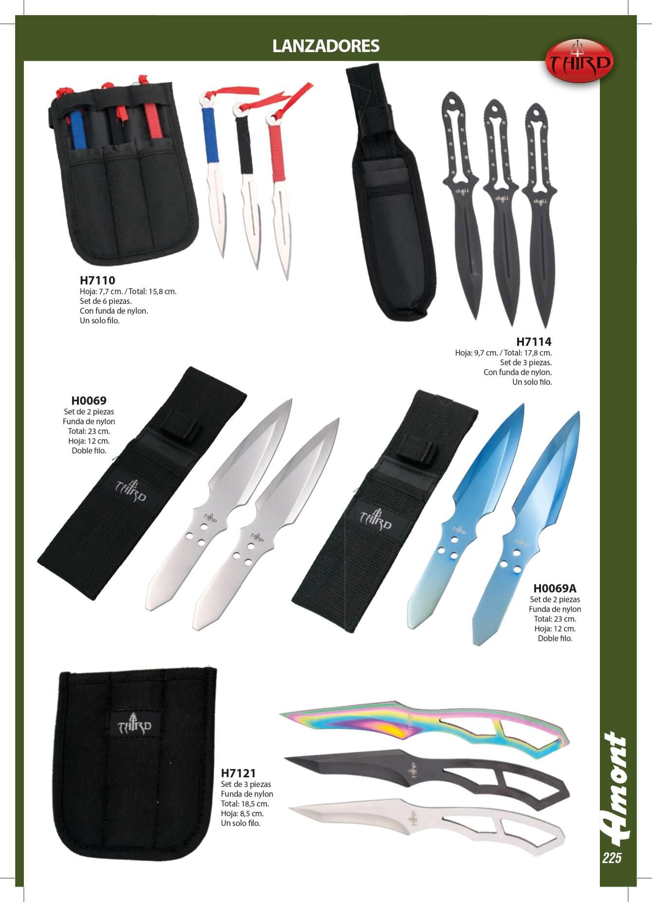 Länge des Blattes: 9,7 cm. Gesamtlänge: 17,8 cm. Set 3 Stück. Mit Nylonscheide. Eine einzelne Kante.